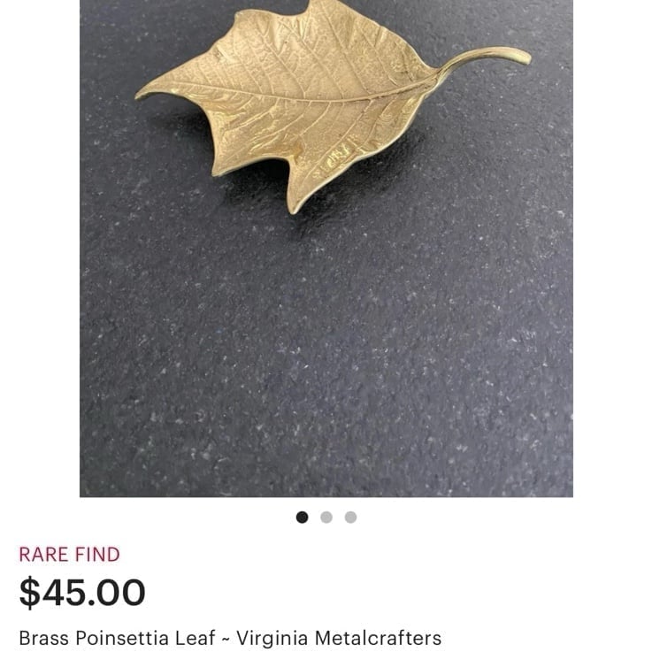 UNIQUE GIFT: Vintage Cast Brass Virginia Metal Crafters 6" Poinsettia leaf containing handpainted ornamental (beta) fish in resin. The leaf alone is sold for $45 elsewhere