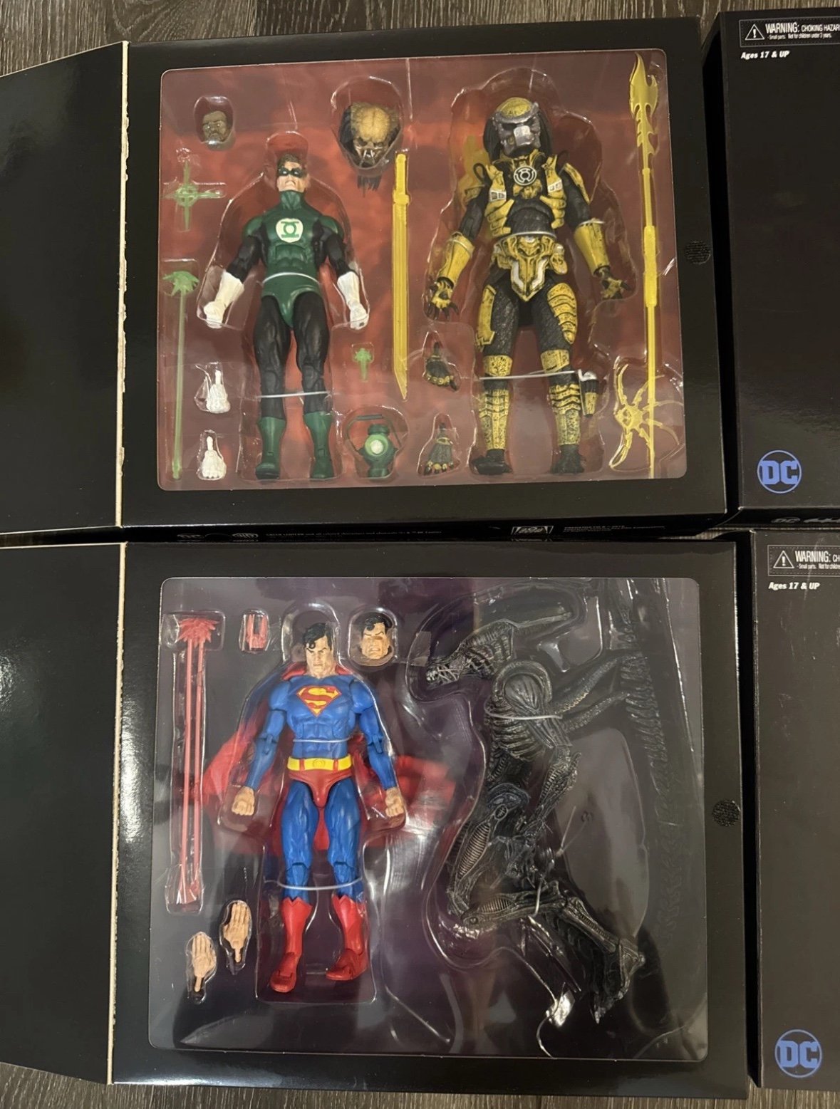 Brand new, never opened. Boxes have some slight shelf wear on the edges from storage and the top of the green lantern vs predator box has a small rip in the back (see photo). Smoke free home and let me know if you have any questions!
