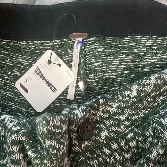 NWT Free People Cozy Knit Trouser Cotton Pants Size SBrand New With Tag81% cotton, 19% nylonColor: Green And WhiteSuper cozy knit sweater trousers featured in a straight-leg silhouetteHigh-riseFour-pocket styleButton closure and zip flyLoose fitOversizePlease check measurements before orderNo rips stains or holes.Photos are best descriptors.Pet free smoke free house. Approx. Measurements taken flat: - waist 18”- length 39.75”- inseam 25.25”- rise 16.5”