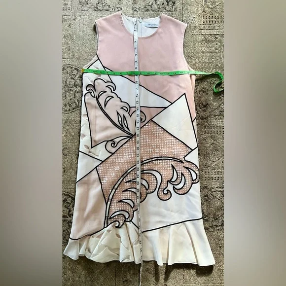 This stunning Viktor & Rolf dress is a must-have addition to any fashion-forward woman's collection. The Italian-inspired collage style creates a unique and chic look, while the silk lining adds an extra touch of luxury. The dress features a convenient zip closure and falls to knee length for a sophisticated silhouette. The XS size makes it perfect for a petite frame, and the multicolor design and beautiful detailing are sure to turn heads. This designer dress was purchased for $695 and worn twice. In excellent condition.