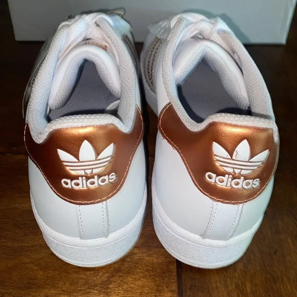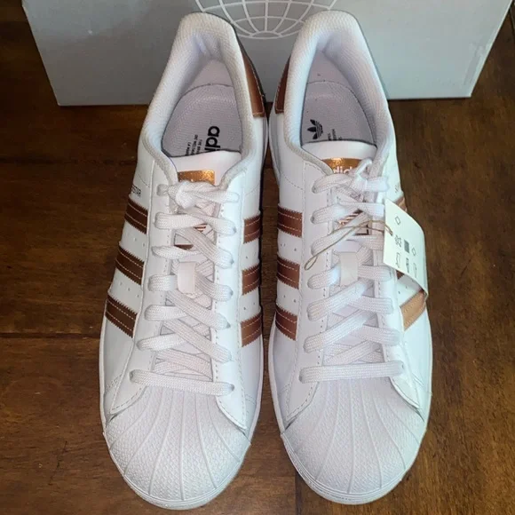 🆕 ADIDAS superstar women’s size 9•Regular fit•Lace closure•Leather upper•Textile lining•Rubber outsole•Imported•Product color: copper/white •A shell toe iconSlip into a pair of adidas Superstar Shoes and step out in style. The smooth leather upper and textile lining provide premium comfort while the iconic rubber shell toe offers protection as you go about your day. Whether you're hitting the shops or meeting friends for coffee, these shoes keep you looking fresh with their clean, minimalist design and on-trend seasonal colors. Paying homage to '90s street style, the adidas Superstar II shoes play on key details from the original while updating the silhouette for today's fashion.• comes with a Adidas pure motion box •Non smoking home