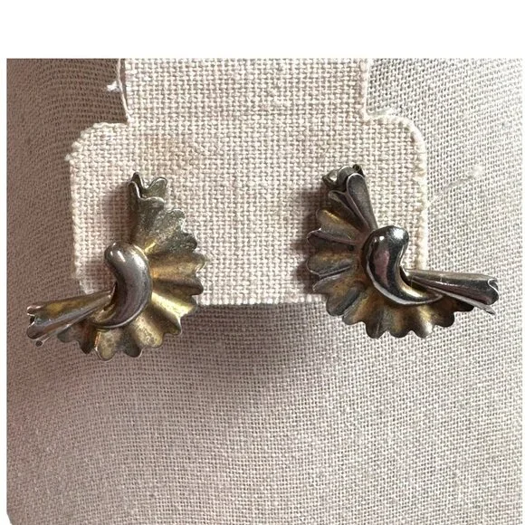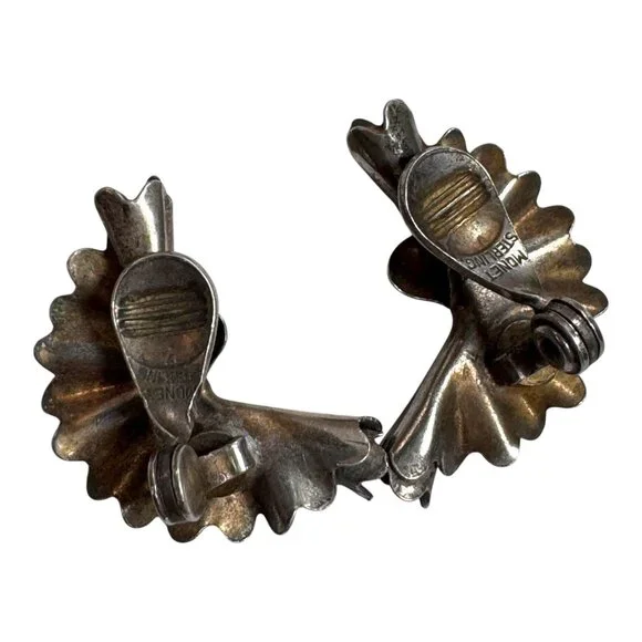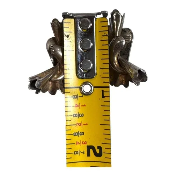 Elegant vintage Monet sterling silver earrings with a floral design. Clip-on style ensures secure wear. Weighs 7.72g. Adds timeless sophistication.• Made of sterling silver• Intricate floral design• Clip-on closure• Approx. 1.25 inches in length• Weighs 7.72gTarnish and signs of age present. Top to bottom = 1.25 inches.