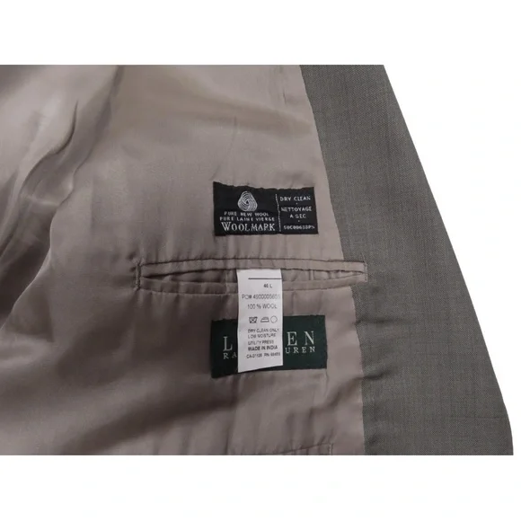 Description: NWOT Lauren Ralph Lauren LRL 100% Pure New Wool 2 Button Blazer Sport Coat Jacket-Two button closure -Two front flap pockets-Left chest pocket-Single vented-Four button cuffs-Notch collarSize (Check Measurements): Mens 46 LColor: TanFabric: 100% pure new woolCondition: New Without TagsItem#: 66306Measurements are in inchesArmpit to armpit: 24 1/4"Back bottom of the collar to the hem: 33 1/4"Shoulder to shoulder: 20 3/4"Shoulder seam to end of cuff: 24 3/4"BUYING VINTAGE·We do our best to thoroughly inspect all items for any visible imperfections i.e., rips, repairs, holes, stains, etc. and note as such.·Please note vintage sizes are not always comparable to today's sizing. Please refer to the measurements in the description for a more accurate depiction of the true size. If an issue should arrive, please contact us prior to leaving a negative as we strive for providing excellent customer service.Please compare your measurements to the measurements provided in the listing description to ensure a proper fit. 63091