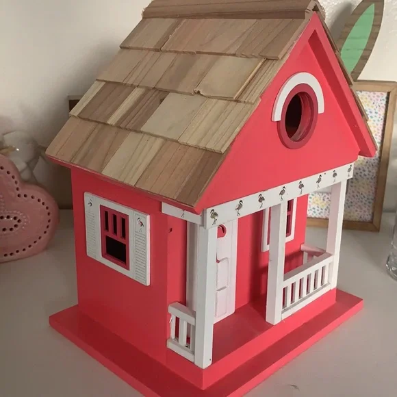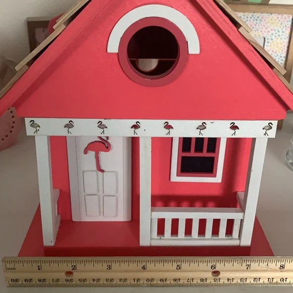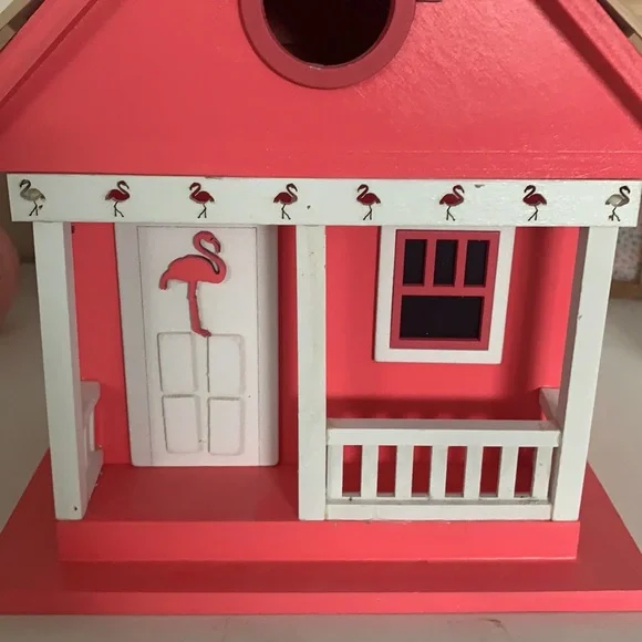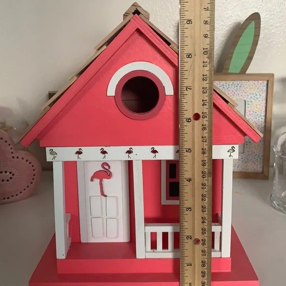 Pink Flamingo Bird House. Brand New. Please see pictures for measurements.