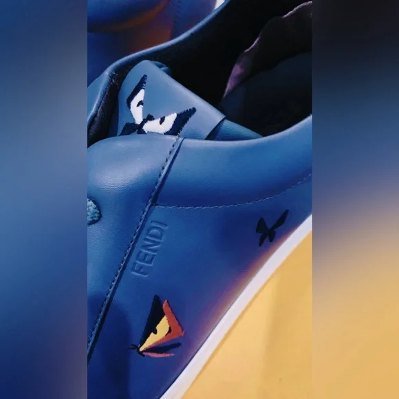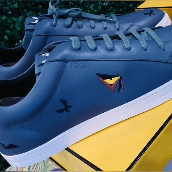 FENDI Multicoloured Butterfly Bag BugsLow-Top (Storm) Leather Sneaker, Size UK12 US13Brand New Karl Lagerfeld was an icon in his own right and has been bringing his playful design vision to the designs of the Roman house of Fendi for over fifty years. Expect adorable Karlito bag charms in fluffy fur, angry little monster motifs and clean, swoon-worthy ready-to-wear pieces. That look exquisite on you whether you’re opting for a tailored look or a casual outfit. Not unlike these rare and unique Fendi storm Butterfly Bag Bugs Low-cut leather sneakers. That feature Fendi’s signature collection Monster butterfly motif subtly woven and dispersed into the front and sides of goat and calf skin leather upper of each sneaker. And will look impeccable whether you choose a tailored look or a casual outfit alike. Storm colored buttery soft leather and cushioned mesh line the insoles and inner layers of each shoe. Margom rubber soles are affixed and stitched to the footbed for durability, comfort and quality - Made in Italy Condition: Brand NewItem Description: FENDI Butterfly Multicolor Embroidered Bag Bugs Low-Top (Storm) Leather Sneakers Brand Name: FENDI (Fendi)Material: Lambskin and calfskin leathers, polyesterSole: Margom rubber. Color: Storm multicolored Size: UK12, US13, IT46List Price:$650. Country of Manufacture: Italy 🇮🇹 Model: SNEAKER VITELLO RICAMO FARFALLE INCROCIATO TEMPESTA MULT TEMPES 7E1062 9W9 F08JN FENDIBrand Style ID: 7E10629W9