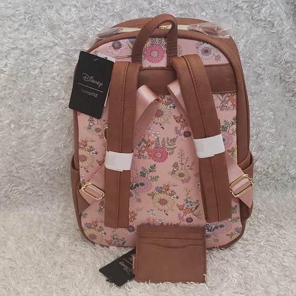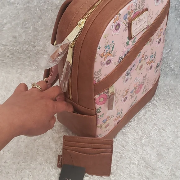 New Loungefly Disney's Bambi featuring Bambi, Thumper, Flower allover floral print backpack and matching cardholder. See pictures for more details and measurements. Selection by print placement...see last picture. Price is FIRM. Please do not send offers unless bundled with other items with a reasonable offer. Combine orders into a Bundle and pay for only one shipping.C-45