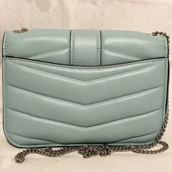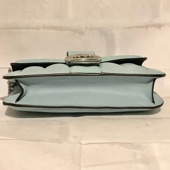 🌸COACH C4519 WATERFALL QUILTING GEORGIE CROSSBODY BAG MSRP $398Approx. 7.5L x 2W x 5H inchesColor - blueSilver hardwareSingle handle, adjustable 17-22 inches Snap closureLined interiorNo hang charmExterior pocket - 1 slip at backInterior pockets - 1 zip, 2 slip Interior - 8 credit card slots , zip section , 2 slip sections Material - leather Dust bag / protective dust cover included *Outlet design. Sale on discount authentic designer COACH bag stripe purse file bag messenger xbody signature pocketbook handbag NWT.