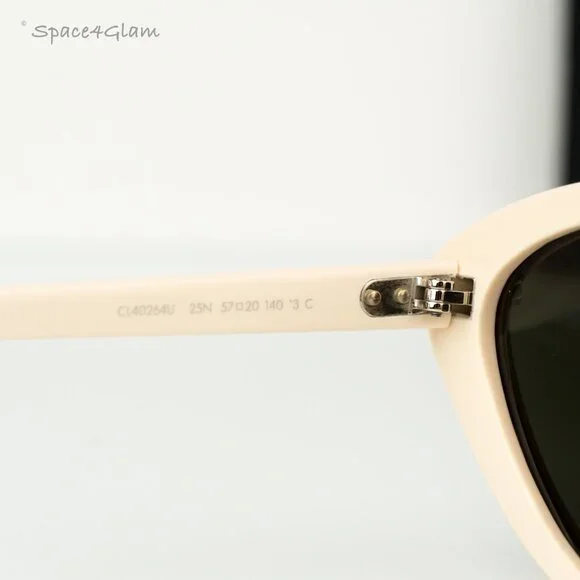Celine Women Sunglasses Ivory Khaki Cat Eye CL40264U THIN 25N BRAND NEW🚚 SAME/NEXT DAY FREE SHIPPING!NO OFFERS ACCEPTED. FINAL PRICE!🛒 DON'T MISS OUT, SHOP NOW!100% AUTHENTIC & BRAND NEW!🌟 Brand: Celine🌟 Model Number: CL40264U THIN🌟 Color Code: 25N🌟 Gender: Women🌟 Frame Color: Shiny Ivory🌟 Frame Shape: Cat Eye🌟 Frame Style: Full Rim🌟 Frame Material: Acetate🌟 Lens Color: Khaki🌟 Lens Material: Organic🌟 UV Protection: 100% UV Protection🌟 Lens Width: 57mm🌟 Lens Height: 40.3mm🌟 Bridge Width: 20mm🌟 Temple Length: 140mmMade in Italy🎁 FULL RETAIL CELINE SET INCLUDES:GlassesCaseCleaning clothBookletCeline branded boxCeline CL40264U THIN 25N sunglasses offer a refined cat eye silhouette in a glossy ivory acetate frame, beautifully complemented by soft khaki lenses. Designed exclusively for women, these full-rim sunglasses combine fashion-forward elegance with everyday practicality. Lightweight and Rx-able, they provide a flattering fit and 100% UV protection.Elevate your look with this chic accessory — FAST, FREE SHIPPING included!