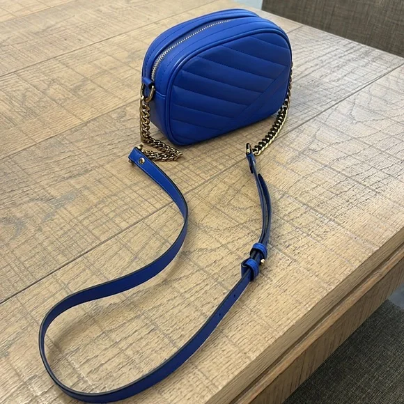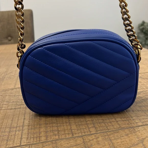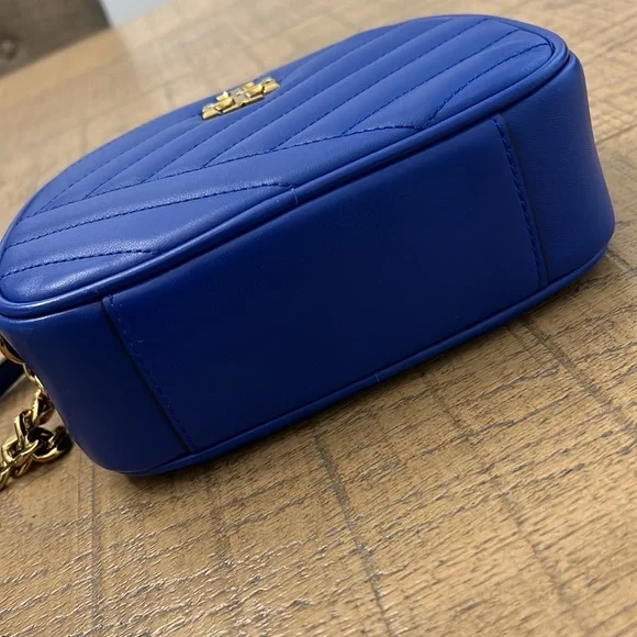 💯Authentic SMALL KIRA CHEVRON CAMERA BAG.Small Kira Camera Bag is made of soft chevron-quilted leather with beveled Double T hardware. It is finished with an adjustable leather and chain strap. Gorgeous royal blue color not seen in stores. Pre-owned like new. No strains. Stitching is perfect. * Height: 4.9" (12.5cm); length: 7.1" (18cm); depth: 2.4" (6cm)* Napa leather* Cotton herringbone lining* Zipper closure* Adjustable chain and leather crossbody strap with22.2" (56.5cm) drop * 2 interior front slit pockets, 1 back zipper pocket* Dust bag included