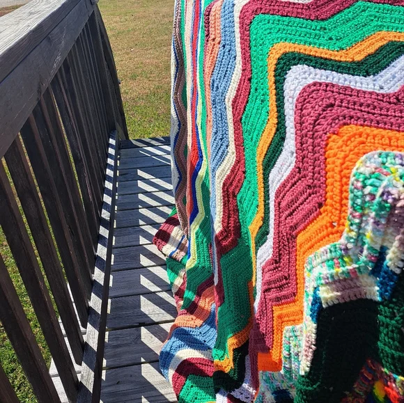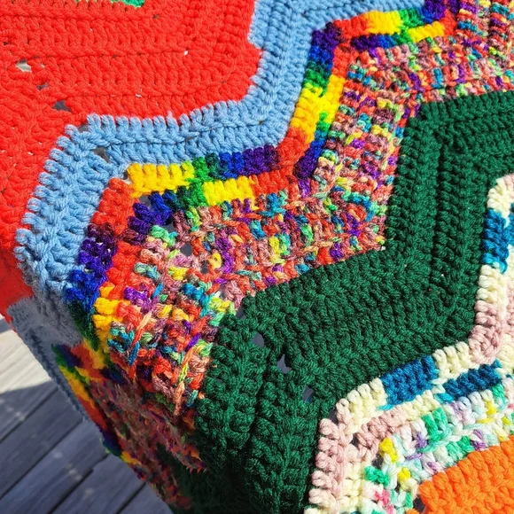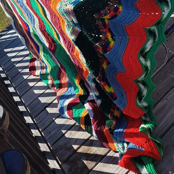 EUC. No flaws detected. Many pretty colors. Some solid, some multi colored. There's one layer that looks like confetti cake (imo), big rainbow, small rainbow, hombre green, pastel rainbow. A lot of pretty layers. I can't do any bundles with this one because it's big and heavy. It's nice and soft. Additional details upon request. Thank you for looking!Bin#AT13 11/5/23