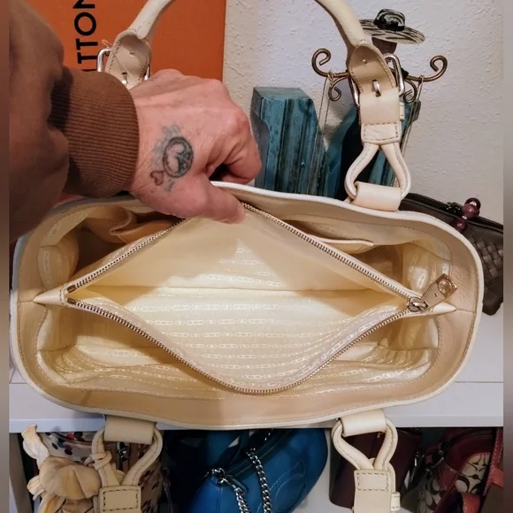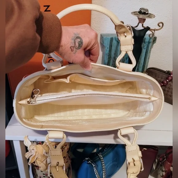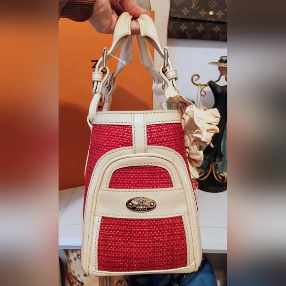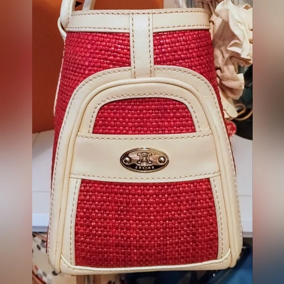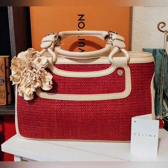 This beautiful woven Celine boogie bag with bag charm is in excellent used condition!! The handles and corners are superb!! The inside is so clean and the Celine heat stamp and date code is shown in the pictures. Someone took extremely good care of her. The only wear is on the bag charm which can be taken off. Please look at all the pictures as they are part of the description. All sales are final. No refunds or returns.
