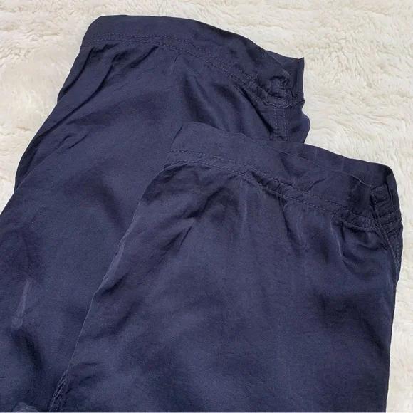 Pre owned authentic Raquel Allegra Women's Dark Blue 100% Rayon Track Pants Size 1. Rise is 12” inches. Inseam is 25” inches. Waist laying flat is 12” inches. Has some pulled threads. Please look at pictures for better reference. Let me know if you have any other questions. Happy Shopping! OCT24. B2 TAGS: relaxed yet refined, eco-conscious materials, casual yet elevated, soft to the touch, easy to dress up or down, sophisticated track pants, perfect for lounging or travel, chic everyday wear, elevated athleisure, Raquel Allegra brand, effortless cool.